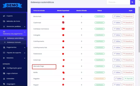 - Mais de 20 gateways de pagamento e configuração de mais de 250 moedas.