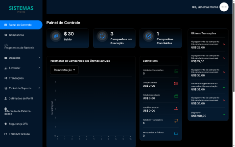 - Sistema avançado de campanha e rastreamento: Crie, gerencie e monitore campanhas de afiliados com rastreamento de conversão em tempo real e registros de atividades.