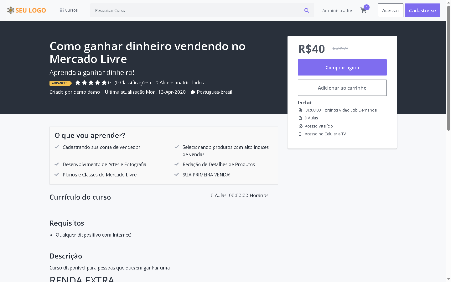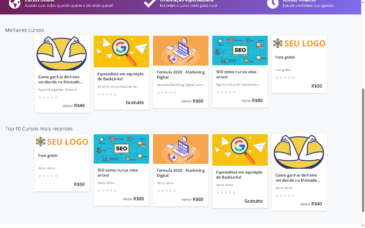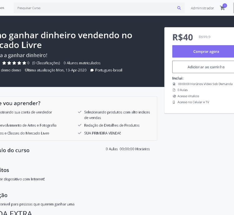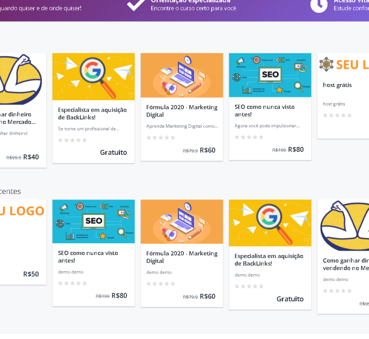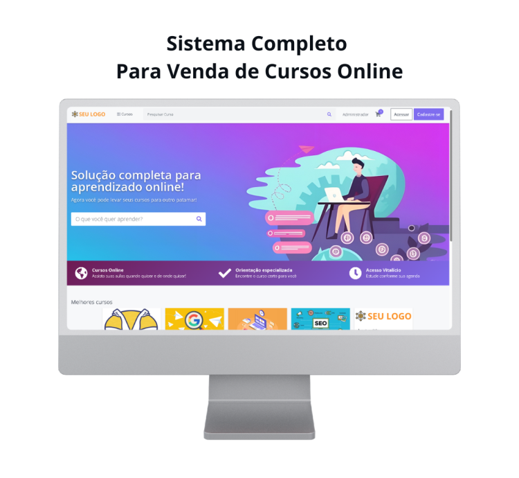 Com design responsivo, painel administrativo intuitivo e integração com métodos de pagamento, você poderá criar, divulgar e vender seus cursos em poucos minutos.