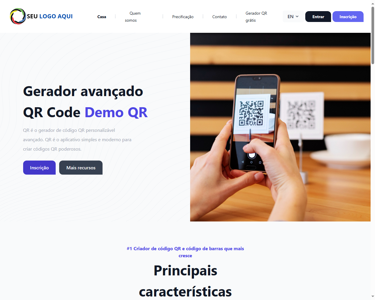Código QR avançado + construtor de código de barras | SAAS | Construtor de QR | Criador de código de barras