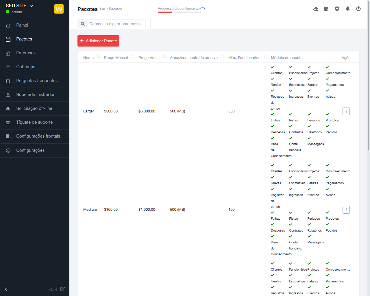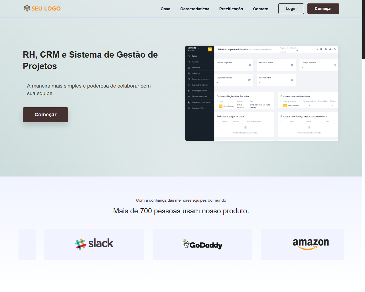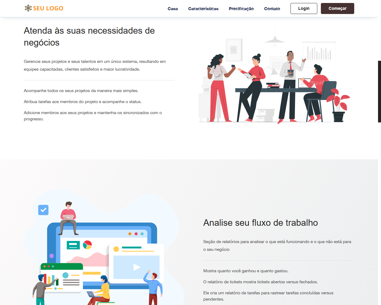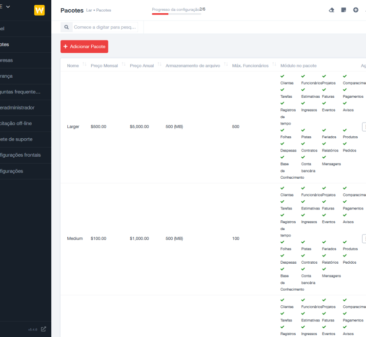 - Acompanhe projetos, faturas e propostas/estimativas de clientes