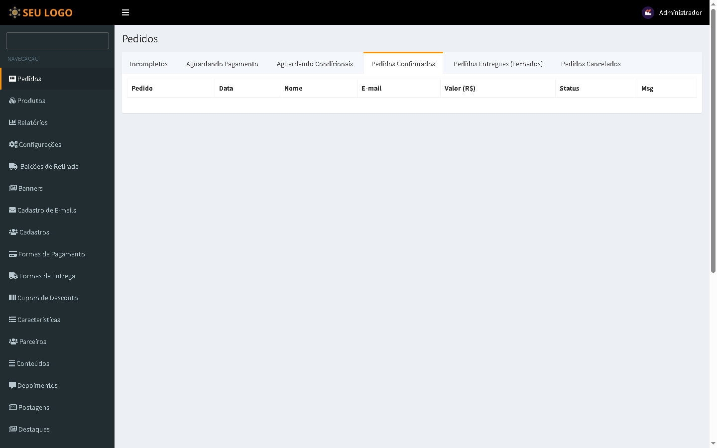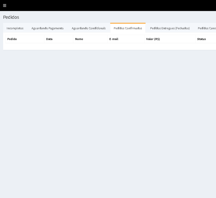 – Pedidos ( Incompletos, Aguardando Pagamento, Pedidos Confirmados e mais )