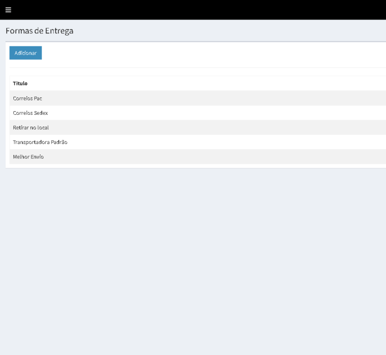 – Formas de Entrega ( Correios PAC, Correios Sedex, Melhor Envio, Retirada na Loja )