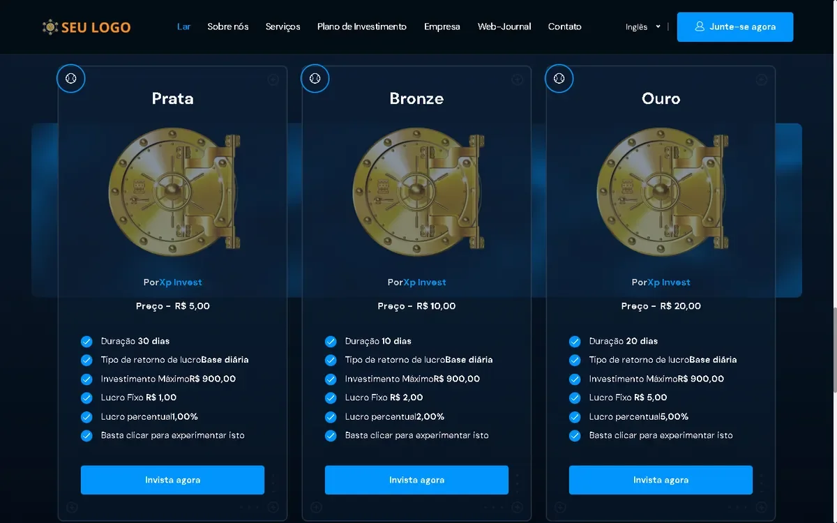 Plano de compra: os usuários podem comprar o plano de sua preferência usando o saldo da carteira para investir. Em troca, as empresas compartilham os lucros com eles.