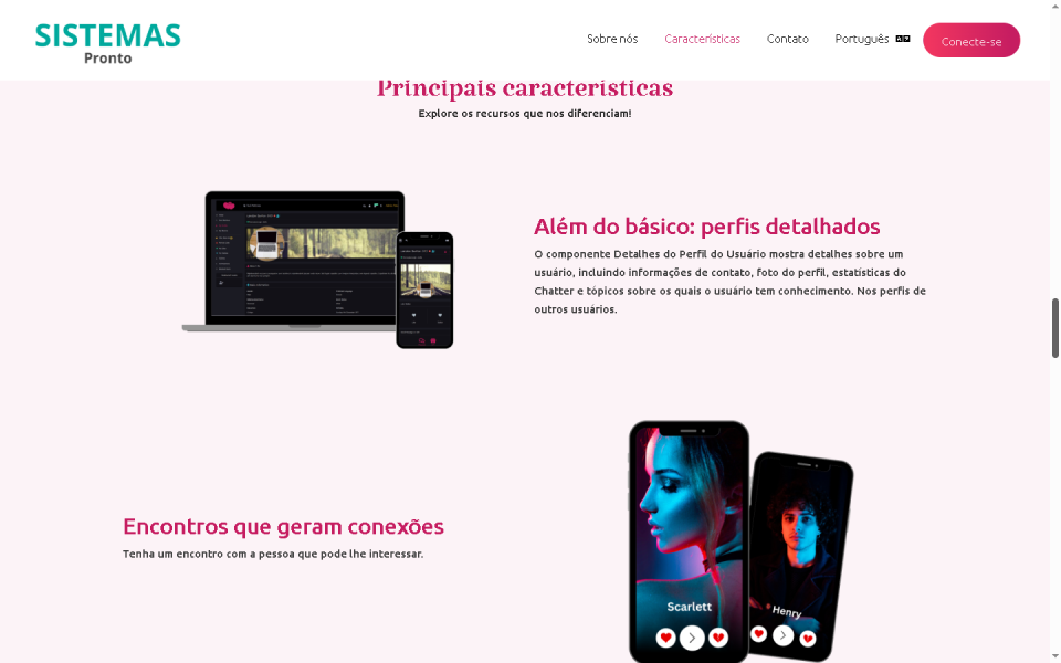 Interaja com seus usuários com sistemas de bate-papo interativos, perfis de usuário personalizados e uma interface intuitiva. Abrace o futuro dos encontros online e junte-se à revolução hoje mesmo.