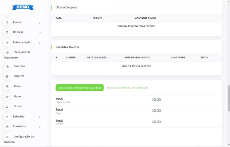 Um orçamento é um plano financeiro para um período específico para acompanhar o capital de giro. Esse recurso aqui ajuda a manter o fluxo de capital. Você pode definir orçamentos mensais, trimestrais, semestrais ou anuais de acordo com seus planos e necessidades de negócios. As categorias principais são “Receitas” e “Despesas”, onde também é possível editar/atualizar/excluir as subcategorias.