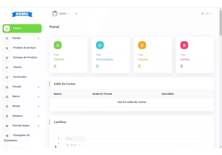 - Criação de Notas Fiscais e Contas e gestão de receitas e pagamentos