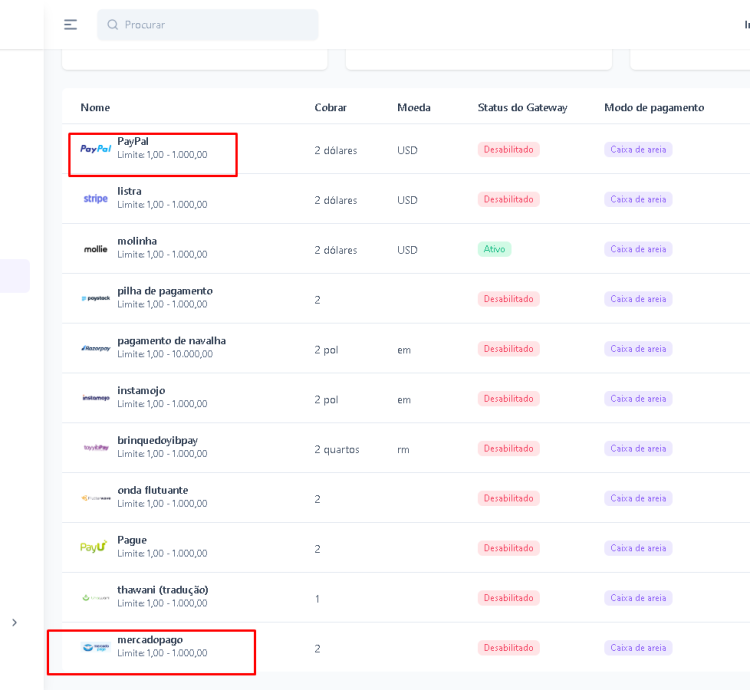 - Painel de pagamento: