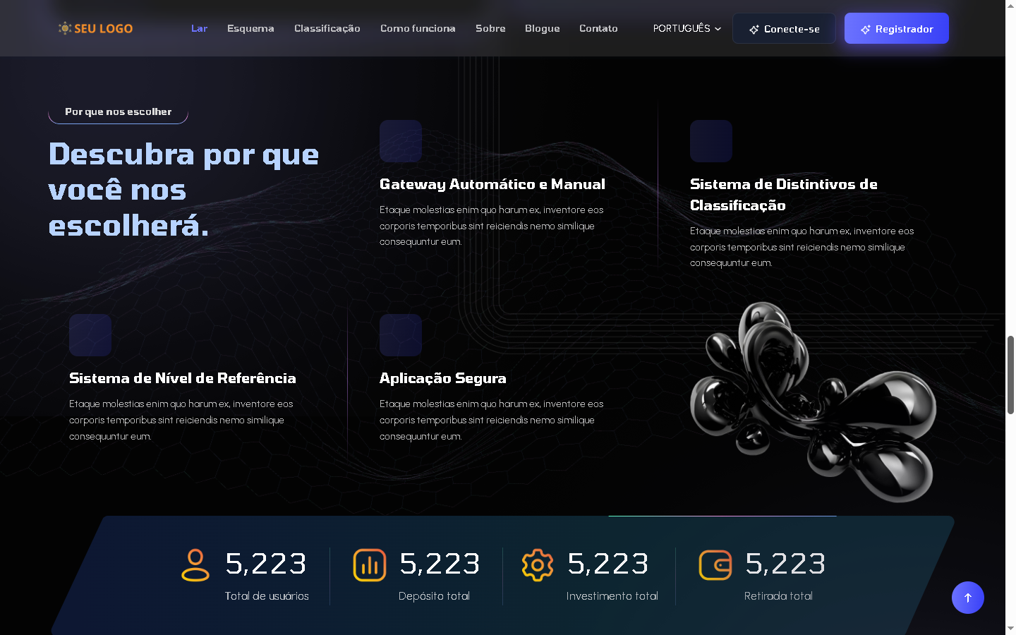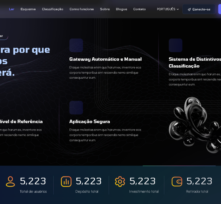 É um script de investimento Hyip dinâmico, rápido e altamente seguro. No sistema, o usuário pode se registrar no aplicativo, depositar na conta e investir em qualquer um dos Planos de Investimento. Os usuários podem receber o Bônus de Inscrição or se registrarem no site e também podem ganhar por indicação. O sistema possui vários níveis de indicação para obter o bônus de indicação.