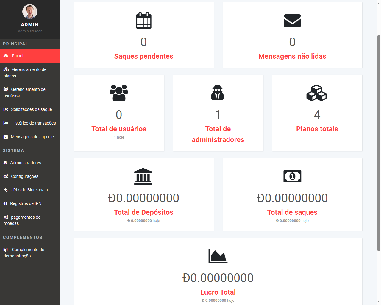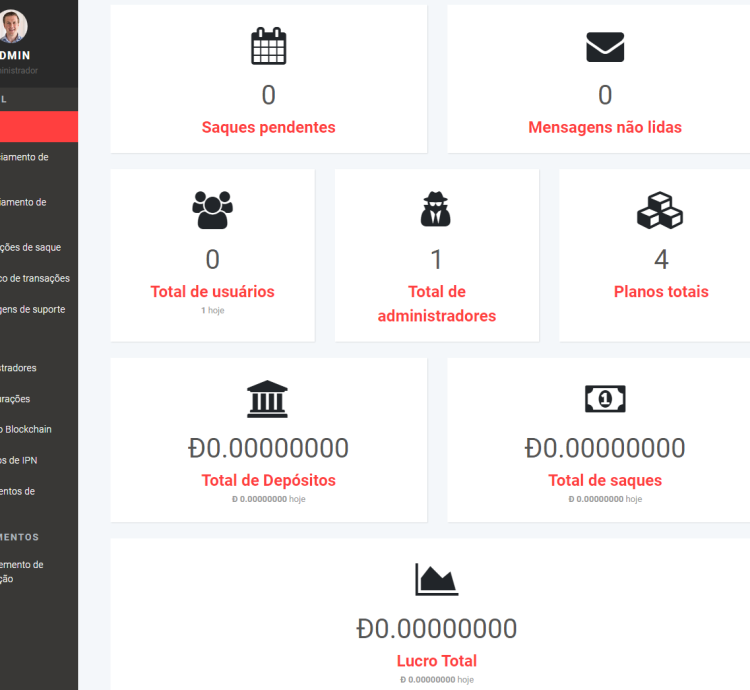- Gerenciamento de Usuários: Visualização dos detalhes dos usuários, incluindo histórico de depósitos, retiradas, ganhos de afiliados e planos ativos.