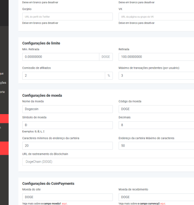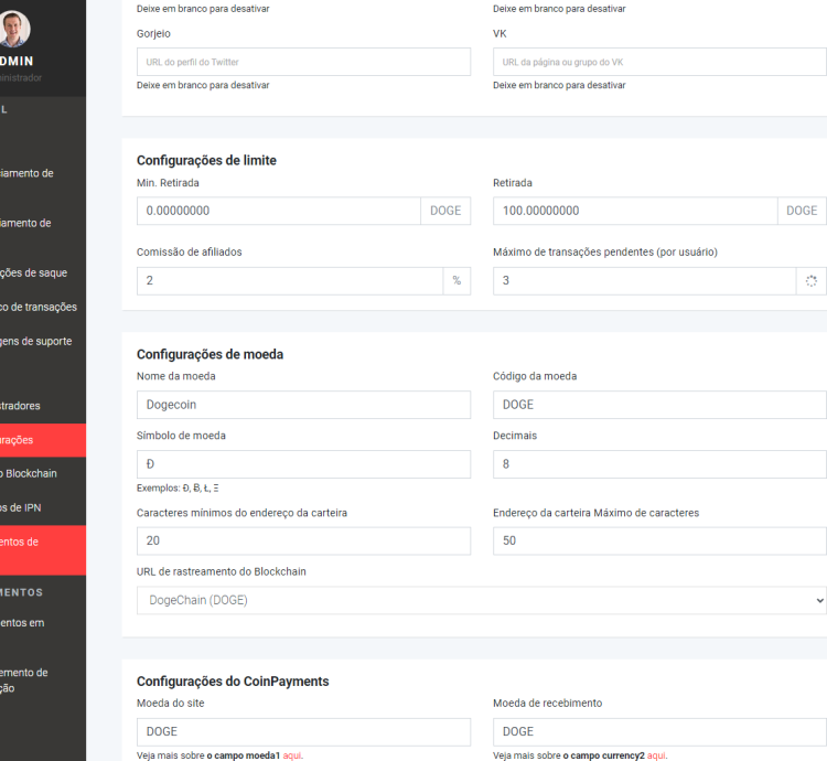 - Aceite de Criptomoedas: Aceitação de Dogecoin (padrão) e qualquer outra criptomoeda suportada pelo CoinPayments.