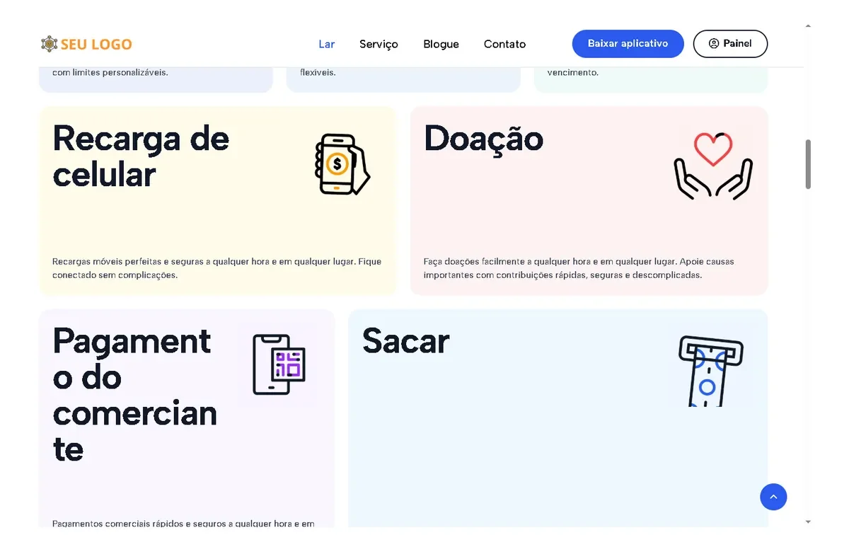 Escalável e seguro: construído com tecnologias modernas, o sistema oferece segurança robusta com verificação OTP, autenticação 2FA e transações seguras, garantindo a segurança das informações financeiras dos seus clientes.