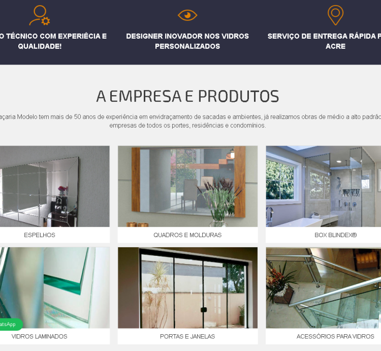 Catálogo digital de produtos (vidros laminados, box, molduras, etc.